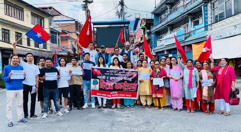 महंगी र भ्रष्टचार बिरुद्ध नेकपा एमाले लमजुङको विरोध प्रदर्शन