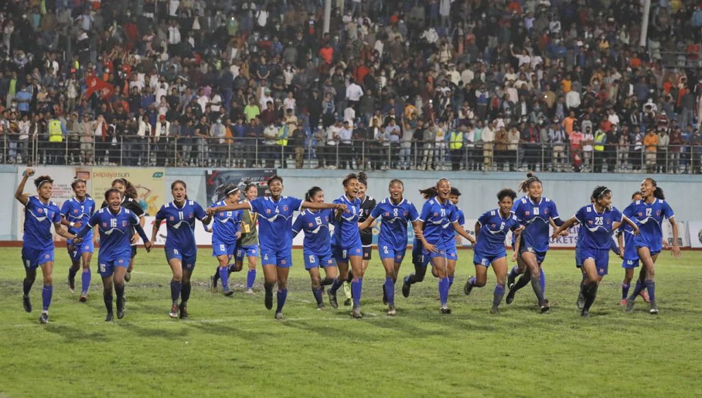 शुक्रबार त्रिपुरेश्वरस्थित दशरथ रंगशालामा भएको खेलमा नेपालले चिरप्रतिद्वन्द्वी भारतमाथि १–० को जित हात पारेको हो । महिला साफ च्याम्पियनसिपको इतिहासमा नेपालले भारतलाई हराएको यो नै पहिलो पटक हो ।