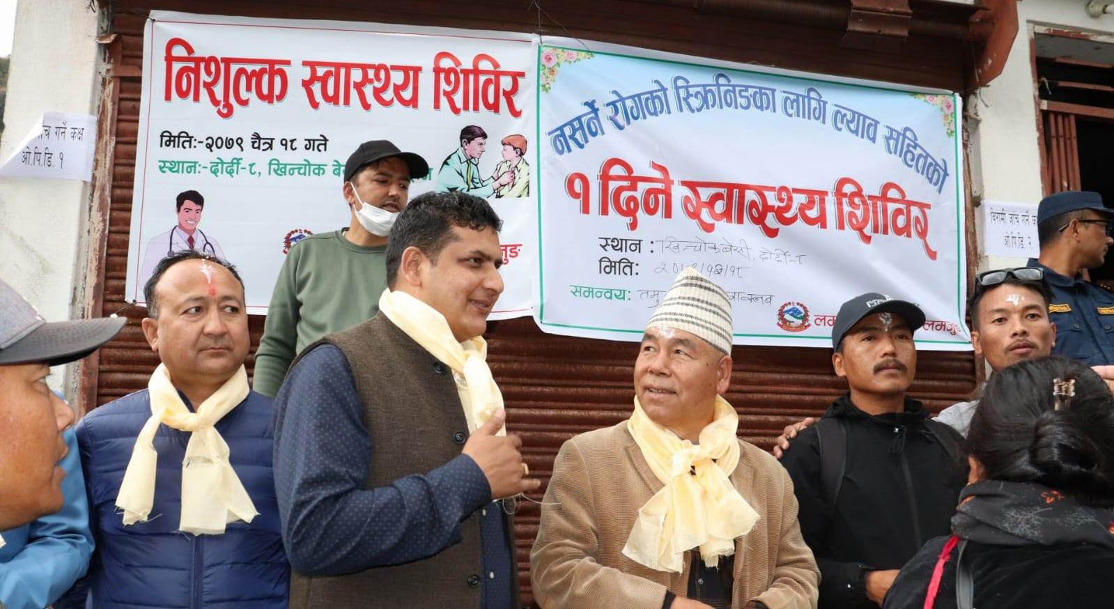 दोर्दी । दोर्दी ८ खिन्चोक बेसीमा एक दिने निःशुल्क स्वास्थ्य शिविर सम्पन्न भएको छ । लमजुङ अस्पताल र तमु कल्याण युवा क्लवको संयुक्त आयोजनामा भएको उक्त शिविर कार्यक्रमको नेकपा माओवादी केन्द्रका महासचिव देवप्रसाद गुरुङले उद्घाटन गरेका थिए ।