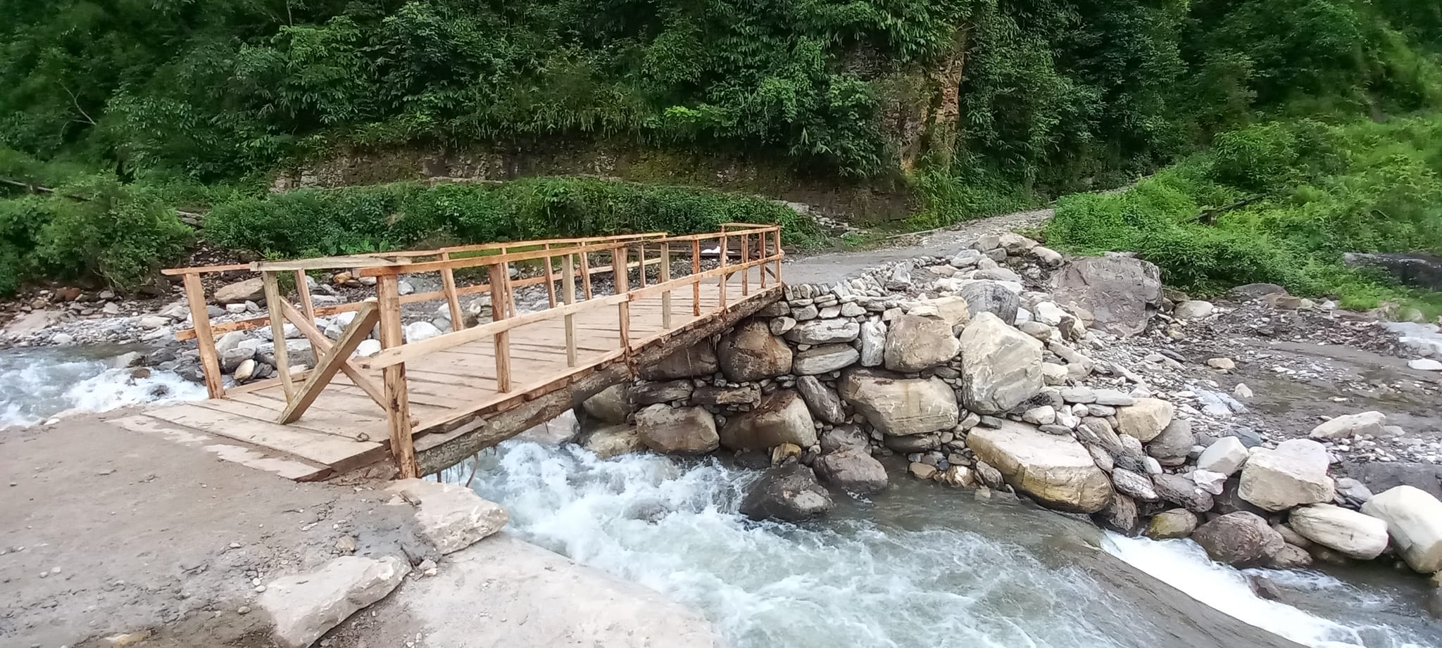 स्थानीयले करिब एक महिनाको प्रयासमा काठको पूल निर्माण गरेपछि अहिले आवत जावतमा सहज भएको छ । वडा कार्यालयको संयोजनमा स्थानीयले भाचोक खोलामा अस्थायी काठे पुल निर्माण गरेका हुन् ।