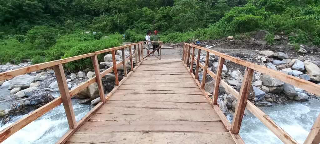 लमजुङ । बेंसीसहर नगरपालिका वडा नं. १० का बासिन्दाले भाचोक खोलामा काठको पूल निर्माण गरेका छन् ।