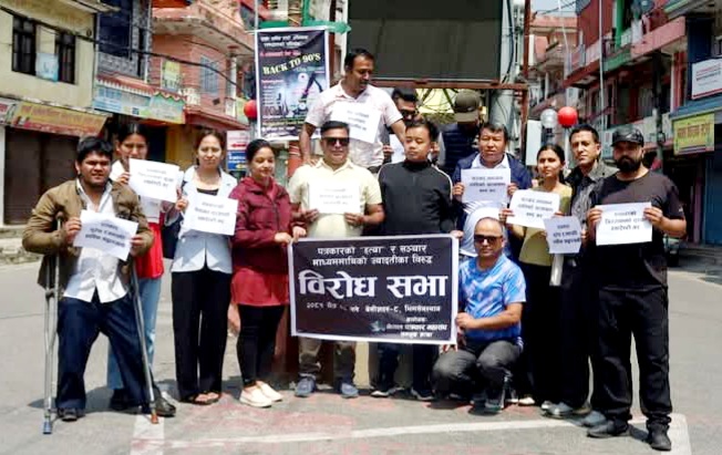नेपाल पत्रकार महासंघका केद्रीय सदस्य कृष्ण केसीले विरोध सभालाई सम्बोधन गर्दै हिजो भएको रजकको हत्या र सञ्चारमाध्यममा भएको आक्रमण निन्दनीय र भर्त्सनायोग्य रहेको बताउनुभयाे ।